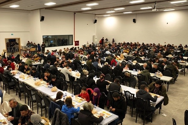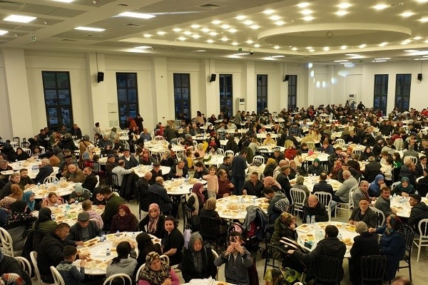 Yeni hizmete açılan Kültür Merkezinin 2 salonu ve fuaye alanı doldu. Çerkeşlilerin aynı sofrada iftar açtığı programda, ilahiler söylendi.