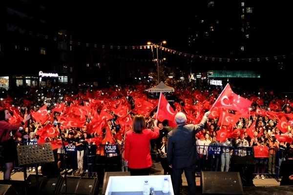 Fener alayına katılan vatandaşlar, 100 kişilik Yaren ekibinin gösterilerinin ardından fuar alanında buluştular. Cumhuriyetimizin 100. yılında sahne alan Altay, çalınan marşlar ve şarkılarla alanda toplanan halkı coştururken 7'den 70'e her yaştan binlerce vatandaş Altay'a eşlik etti.