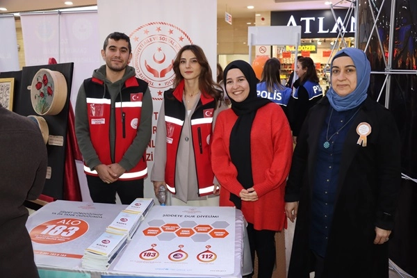 Karakoç'un konuşmasının ardından açılışı yapılan sergide, Kadına Yönelik Şiddetle Mücadele kapsamında konu ile ilgili broşürler dağıtıldı, sanatçılar tarafından yapılan resimler ve diğer eserler sergilendi.