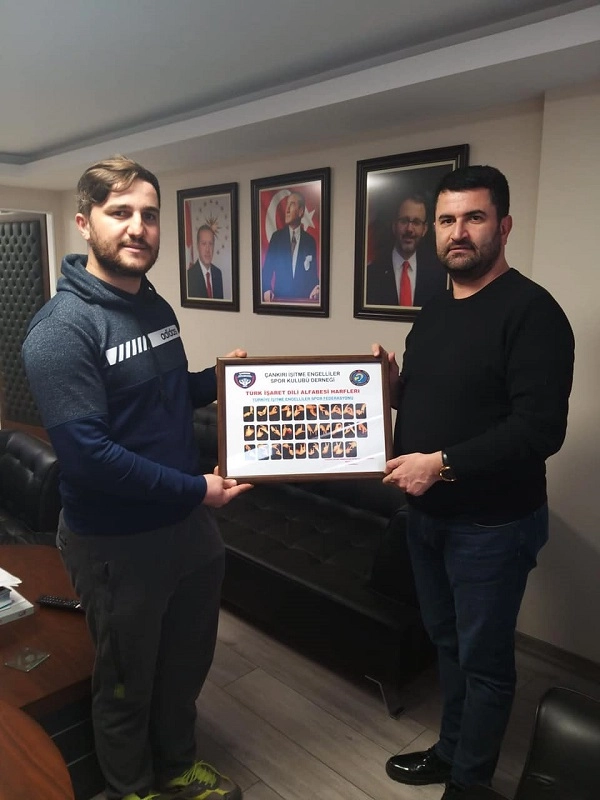 Çankırı İşitme Engelliler Spor Kulübü Derneği Başkanı Recep Nuhoğlu, Türkiye Sağırlar Konfederasyonu Başkanı Orkun Bingül Utsukarcı ve Türkiye İşitme Engelliler Spor Federasyonu Başkanı Yakup Ümit Kihtir'i Ankara'da ziyaret etti. Nuhoğlu, güzel sohbetlerin edildiği sıcak bir ortamda geçen ziyaretler sırasında Utsukarcı ve Kihtir'e Çankırı adına İşaret Dili Harfleri'ni hediye etti.