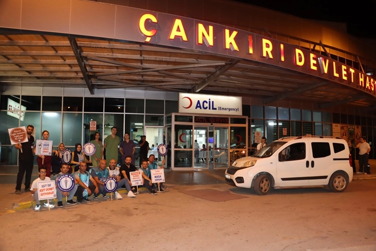 Sağlık-Sen Çankırı Şube Başkanı Tuna Dinç, hükümetin sunduğu zam oranlarını kabul etmediklerini belirterek, “Biz hakkımızı, alın terimizin karşılığını ve adil bir teklif istiyoruz” dedi.