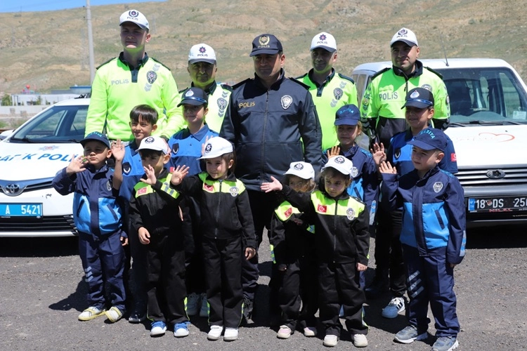Trafik Haftası’nın en anlamlı görüntüleri Çankırı’da çekildi. Belediye Kültür ve Sosyal İşler Müdürlüğü bünyesindeki Çocuk Meclisinde şehrin yönetiminde söz sahibi olan minikler, polis ve zabıta giysilerini giyerek trafik polislerine yardım etti. Ankara yolu girişinde araç çevirmelerine katılan çocuklar, araç sürücülerinin emniyet kemeri takıp takmadığını kontrol etti. Kimlik kontrolü de yapan çocuklar, kimlik sorgulama cihazının nasıl kullanıldığını öğrendi. Minik polisler, bilgilendirme broşürü vererek kuralara uydukları için sürücülere teşekkür etti. Çevirmede kendilerini minik polislerin karşıladığını gören araç sahipleri, uygulamadan memnun kalarak çocuklara yardımcı oldu.
