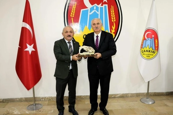 Ziyaret sonunda Başkan Esen, Çankırı Belediyesi Şeref Defteri’ni imzalayan Yargıtay Başkanı Akarca’ya “Kılıç Dişli Çankırı Kaplanı” heykeli hediye etti.