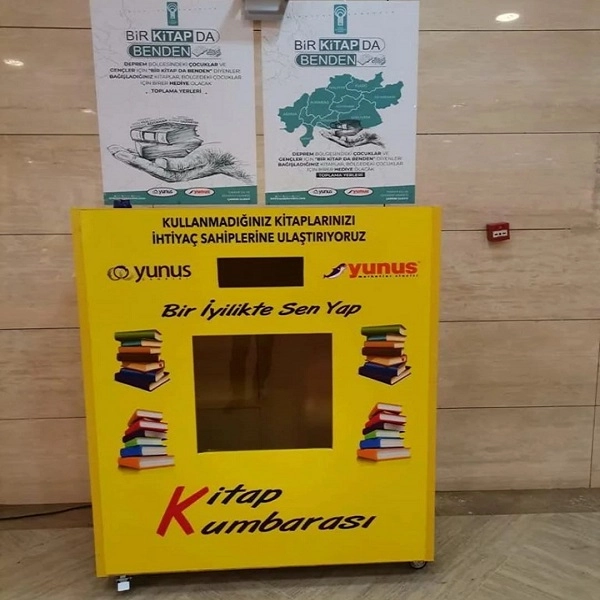 “Bir Kitapta Benden” kampanyamıza, AVM giriş katında bulunan ve Yunus AVM yönetimi tarafından oluşturulan kitap kumbarası vasıtası ile katkıda bulunabilir ve paylaşıp duyurarak desteği çoğaltabilirsiniz. Bu anlamlı Desteklerinden dolayı Yunus AVM Müdürü Kemalettin Din Beyefendiye ve AVM yönetimine teşekkür eder, çalışmalarında başarılar dileriz."