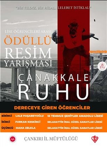 Diyanet İşleri Başkanlığımızca düzenlenen, Çankırı İl Müftülüğü tarafından organize edilen “Bir Yıldız Bir Hilal – İlelebet İstiklal” sloganı doğrultusunda ‘Çanakkale Ruhu’ temalı Lise Öğrencileri Arası Resim Yarışmasında dereceye giren öğrencilerin sıralaması;