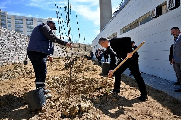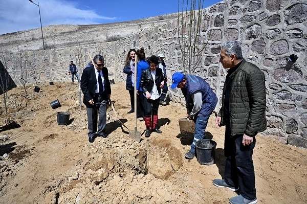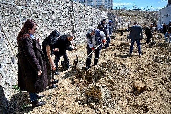 Meyve fidanları Uluyazı Camii yanında hazırlanan alanda toprakla buluşturuldu.