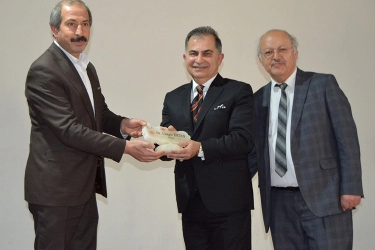Milli Eğitim Şube Müdürü Mustafa Biber ise programın sonunda Dr. Cengiz Erten'e teşekkür ederek hediye takdiminde bulundu. Programda ayrıca, konuk konuşmacıya Okul Müdürü Ahmet Yolcu tarafından, lise yıllarındaki notlarının, teşekkür ve takdir belgelerinin fotokopilerinin yer aldığı ve o dönemdeki hocalarının görüşlerinin belirtildiği sınıf geçme defterinin bir nüshanı hediye edildi. Öğrencilerin ilgi ile izlediği anlamlı program sonunda Dr. Cengiz Erten öğrencilerle hatıra fotoğrafı çektirmeyi de ihmal etmedi.