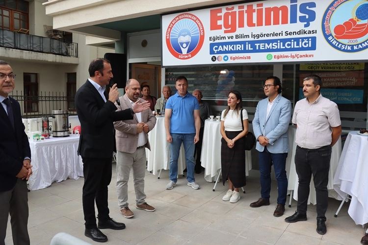 Açılışta bir konuşma yapan Eğitim-İş Çankırı Şube Başkanı Murat Şamasas, Eğitim-İş'in eğitim emekçilerinin örgütlü mücadelesinin girdiği, ırkçılık, gericilik ve bölücülük krizinden çıkartılarak, emekten ve cumhuriyetten yana tutarlı bir sendikal çizgide verilmesi için 17 Ekim 2005 tarihinde ”yeniden” kurulduğunu, 2012 yılında ise Hasan Çubukcuoğlu başkanlığında Çankırı'da Geçit Apartmanı'ndaki ofisinde sendikal mücadeleye başladığını, 10 yıla yakın bir süredir de bu görevi kendisinin yürüttüğünü söyledi.