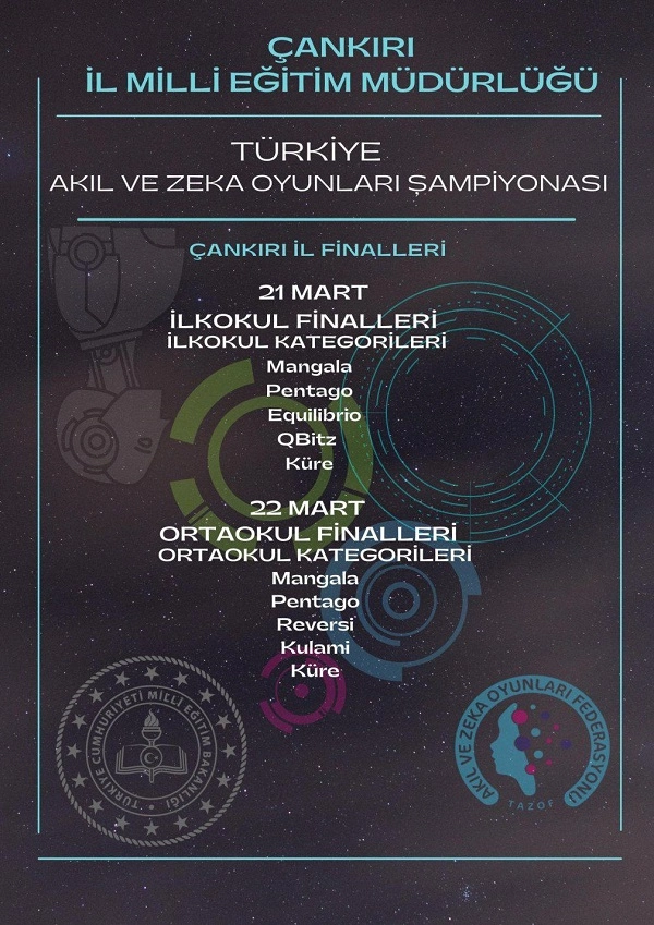 Çocuklarımızın düşünen, üreten ve karşılaştıkları problem karşısında çözümler bulabilen bireyler olarak yetişmesi, bireysel ve grup oyunları ile öğrencilerimizin yeteneklerinin geliştirilmesi, sosyal gelişimlerinin desteklenmesi, öğrencilere kendilerini ifade edebilme fırsatının sunulması, öğrenciler arasındaki iletişim ve dostluk duygularının geliştirilmesi, akıl ve zekâ oyunları ile vakitlerini daha verimli geçirmelerinin sağlanması amacıyla Tüm Akıl ve Zekâ Oyunları Federasyonu ile Bakanlığımız Özel Öğretim Kurumları Genel Müdürlüğü, Din Öğretimi Genel Müdürlüğü ve Temel Eğitim Genel Müdürlüğü arasında imzalan "Türkiye Akıl ve Zekâ Oyunları Turnuvası İş Birliği Protokolü" gereği ülke genelinde yapılacak olan Türkiye Akıl ve Zekâ Oyunları Turnuvası'na da ilimizi temsil edecek öğrencileri belirlemek amacıyla ilkokul öğrencileri arasında 21 Mart 2022 Pazartesi günü, ortaokul öğrencileri arasında 22 Mart 2022 Salı günü Çankırı Akıl ve Zekâ Oyunları İl Turnuvası düzenlenecektir.