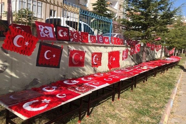 Yarışma sonucu, 135 eserin katıldığı Türk Bayrağı sergi açılışı renkli görüntülere sahne oldu. Etkinlikte minik öğrenciler tarafından "Üç Mum Yaren" folklor gösterisi gerçekleştirildi. Gösteri akabinde ayrıca, M. Kemal Atatürk, Mehmet Akif Ersoy, Seyit Onbaşı, Nene Hatun ve Halime Çavuş gibi kahramanlar öğrenciler tarafından canlandırıldı. Renkli gösterilerin ardından Türk Bayrağı Tasarımı yarışmasında dereceye giren öğrenci ve velilere ödülleri takdim edildi.