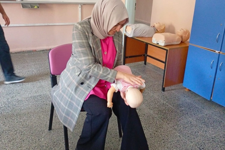 Eğitim kapsamında, temel ilkyardım bilgileri, kalp masajı, suni teneffüs, kanamalar, kırıklar, tıkanmalar ve yanıklar gibi acil durum müdahaleleri uygulaması olarak ele alındı. Öğretmenler, öğrendikleri teknikleri eğitim maketleri üzerinde uyguladılar.