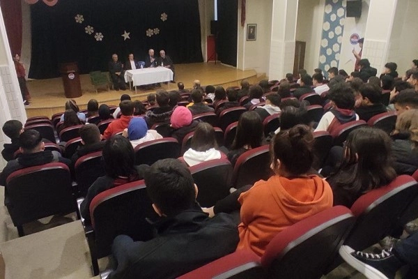Türkiye Harp Malulü Gaziler Şehit Dul ve Yetimleri Derneği temsilcileri, Şehit Hasan Gülhan Cumhuriyet Anadolu Lisesi'nde öğrencilere yönelik "Şehitlik ve Gazilik" konulu söyleşi gerçekleştirdi.