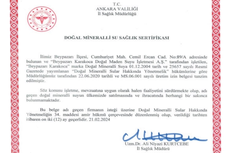 Ankara’nın Beypazarı ilçesinde 1957’den bu yana faaliyet gösteren Beypazarı Karakoca Maden Suyu İşletmesi A.Ş. de ürettiği maden suyunun yüksek miktarda bor içerdiği gerekçesiyle İsviçre’de yasaklanması ve içeriğinde tespit edilen bor elementinin doğurganlık üzerinde olumsuz etkisi olduğu iddialarına yaptığı yazılı açıklamayla cevap verdi.