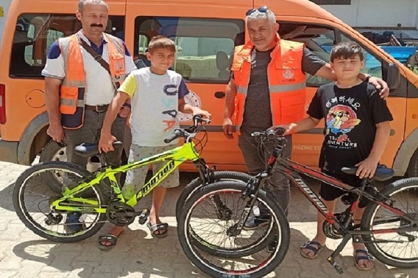 Bisikletlerinin sel sularına kapıldığına çok üzülen Yasin Akçay ve Rüzgar Aydın, karşılarında yeni bisikletlerini görünce büyük bir şaşkınlık ve sevinç yaşadı. Yeni bisikletlerine kavuştukları için çok mutlu olan çocuklar, "İlçemizde meydana gelen sel felaketi bizleri çok üzdü. Bakan amca da ilçemizi ziyaret etti. Onu karşımızda görünce bisikletlerimizin sel sularına kapıldığını söyledik. Böyle bir sürpriz beklemiyorduk. Karşımızda yeni bisikletlerimizi görünce çok mutlu olduk. Bakan amcamıza bu sürprizinden dolayı çok teşekkür ederiz" dediler.