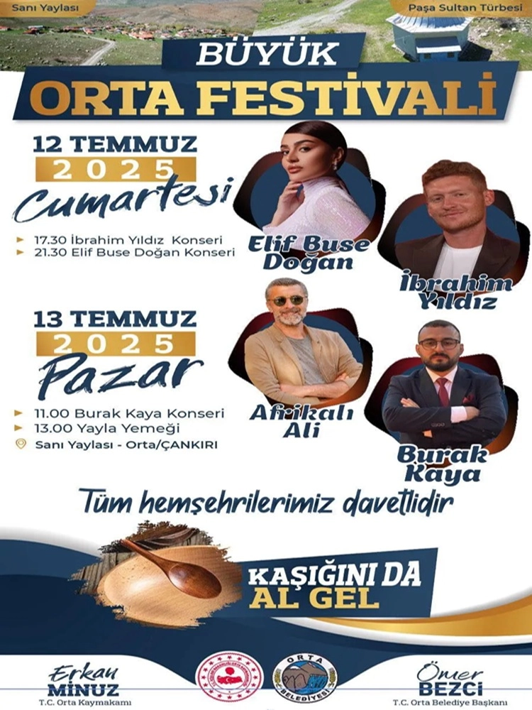 “Yaylalar bizim kültürel hafızamız, doğayla iç içe yaşamanın simgesidir. Sani Yaylası’nda düzenlediğimiz bu festival, sadece bir eğlence değil; Orta’nın kadim değerlerini yaşatma ve gelecek kuşaklara aktarma gayesidir. Sanatçılarımızla, müziğimizle, yayla soframızla halkımızla birlikte olmak istiyoruz. Herkese çağrımız nettir: Kaşığını da al gel, bu birlik havasını birlikte soluyalım.”