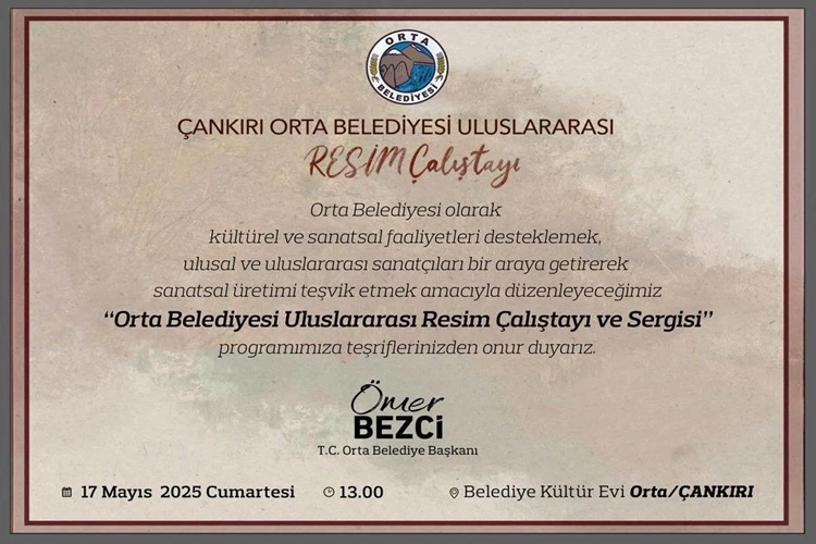Çankırı’nın Orta ilçesi, kültür ve sanatı bir araya getiren özel bir etkinliğe ev sahipliği yapmaya hazırlanıyor. Orta Belediyesi tarafından organize edilen “Uluslararası Resim Çalıştayı ve Sergisi”, 17 Mayıs 2025 Cumartesi günü saat 13.00’te Belediye Kültür Evinde sanatseverlerle buluşacak.