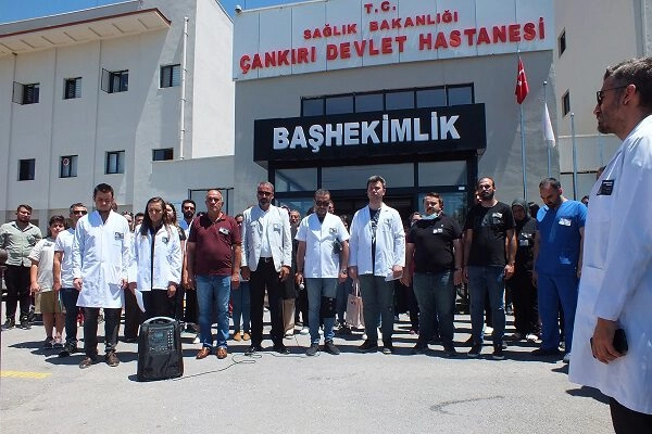 Aile Hekimleri Federasyonu (AHEF) Örgütlenme Komisyonu Üyesi Dr. Mehmet Afacan'ın da hazır bulunduğu ÇANKAHED Yönetim Kurulu adına açıklama yapan Dr. Aysun Eren, "Şehit meslektaşımıza Allahtan rahmet, yakınlarına ve tüm sağlık camiasına başsağlığı ve sabırlar dileriz." sözleriyle başlayan açıklamasına şöyle devam etti: