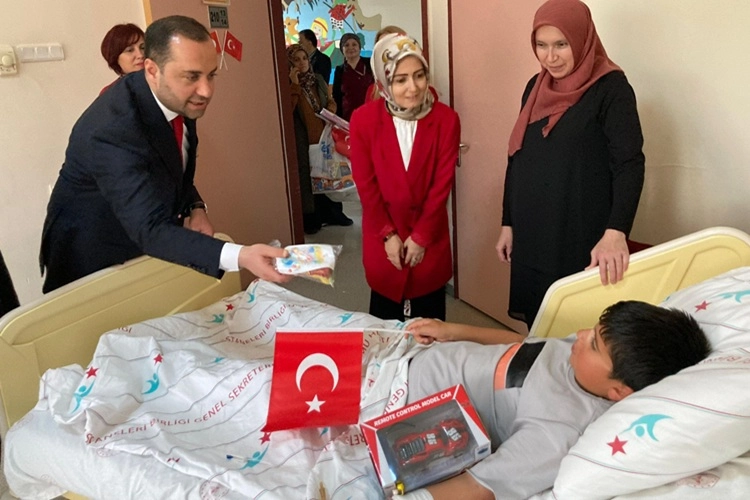AK Parti İl Başkanı Koray Erdoğan, yaptığı açıklamada, “23 Nisan’ın coşkusunu her çocuğumuzun yaşaması için buradayız. Hastanede tedavi gören evlatlarımızın yanında olmak, onlara moral vermek bizim en önemli görevimizdir” dedi.