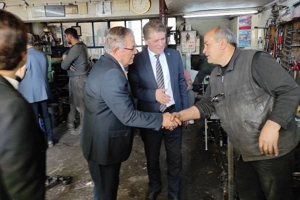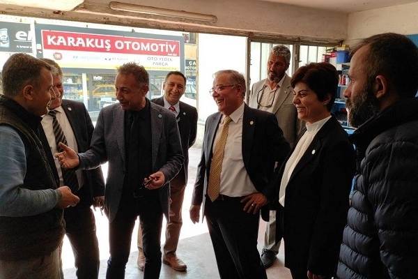 İYİ Parti Çankırı İl Başkanı Aydın Akbaş, Merkez İlçe Başkanı Mustafa Duran ve parti üyelerinin eşlik ettiği adaylar, sanayi sitesinde esnafı tek tek dolaştı, ellerini sıktı, görüş ve önerilerini dinledi.