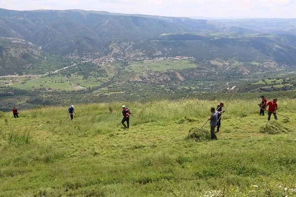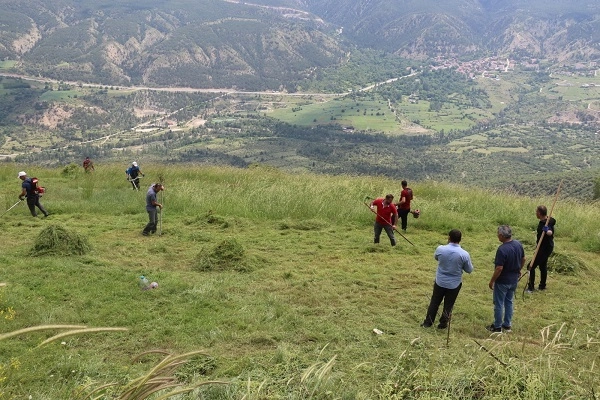 04-09 Temmuz 2023 tarihleri arasında Bayramören'de düzenlenecek XC Open 2023 Yamaç Paraşüt Yarışmaları için kullanılacak kalkış alanları, Gençlik ve Spor İl Müdürlüğü personelleri ve Akseki Köyü Aluç Mahallesi sakinlerinin katılımıyla imece usulüyle vahşi otlardan arındırıldı.