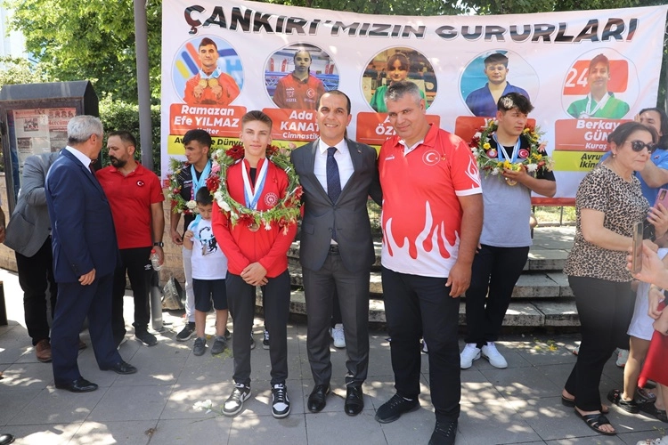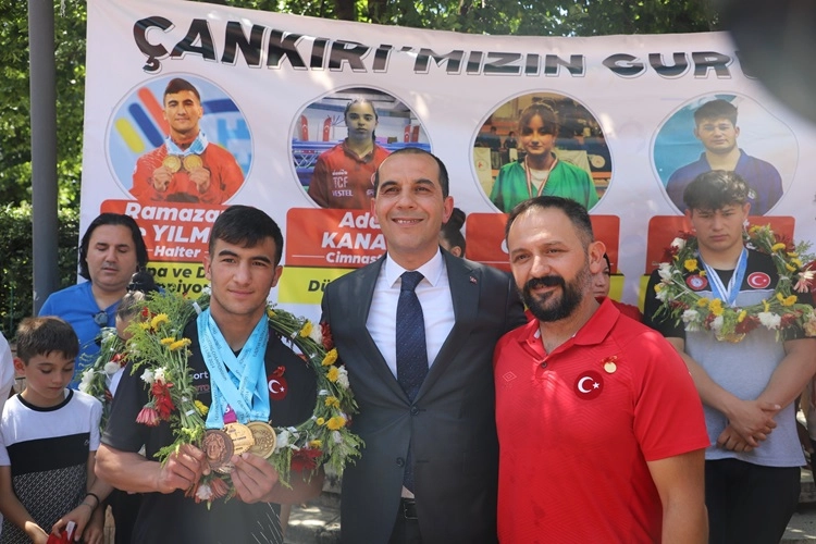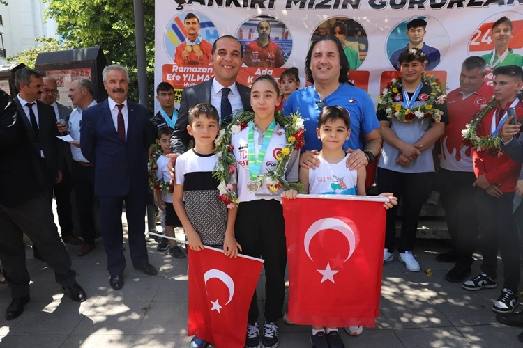 Son günlerde aldıkları madalyalarla göğsümüzü kabartan şampiyonlarımız, bugün Çankırı'ya geldiler. Gençlik ve Spor İl Müdürlüğü, şampiyonlarımız için karşılama töreni, şehir turu ve ödül töreninden oluşan bir program düzenledi. Saat 12:30'da Çankırı Yaren Kapısı'nda düzenlenen karşılama törenine Gençlik ve Spor İl Müdürü Sadık Ak ile Spor Hizmetleri Müdürü Ekrem Şahin ve vatandaşlar katıldı.