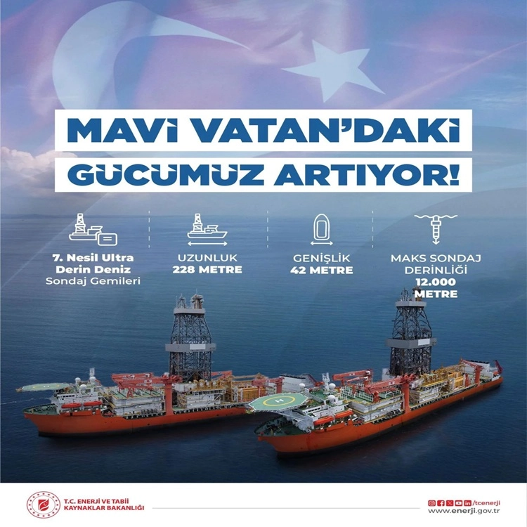 Bakanlıktan yapılan açıklamada, “Enerji bağımsızlığı yolunda kritik bir adım daha atıyoruz. İki yeni nesil derin deniz sondaj gemisini enerji filomuza katıyoruz. Bu takviyelerle birlikte, dünyanın en modern ilk dört enerji filosu arasındaki yerimizi alıyoruz. Tam bağımsız enerji hedefimiz doğrultusunda attığımız bu adım, yalnızca teknik kapasitemizi değil, uluslararası etkinliğimizi de güçlendiriyor. Yüksek teknolojiye sahip bu 7. nesil gemiler, milletimize hayırlı olsun” denildi.