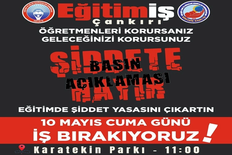 Eğitim-İş tarafından yapılan açıklamada, "Eğitim emekçileri olarak kendimizin ve öğrencilerimizin canından endişe ederek okula gitmek istemiyoruz. Can güvenliğimizin olmadığı bir eğitim sistemini kabul etmiyoruz! Artık yeter! Yaşamak istiyoruz! Eğitimde şiddete karşı çıkmak için, 8-9 Mayıs tarihlerinde iş yerlerimize siyah giyerek ve kokartlarımızla gidiyoruz,10 Mayıs Cuma günü iş bırakıyor ve Ankara'da Adalet Bakanlığı önünde Genel Merkez düzeyinde, illerde şube ve temsilcilikler düzeyinde adliye binalarının önünde basın açıklaması yapıyoruz. Eğitim iş kolunda örgütlü tüm sendikaları ve kamuoyunu birlikte şiddete karşı daha yüksek tepki göstermeye çağırıyoruz." ifadeleri kullanıldı.